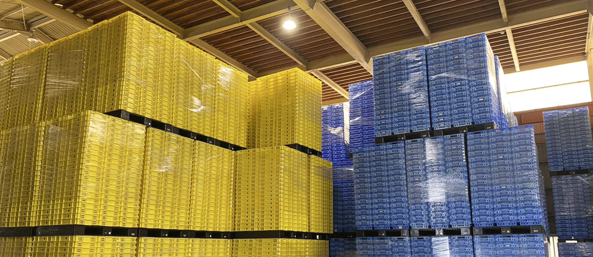 洗浄予備のカゴ・コンテナ在庫の有効活用でレンタル対応。
