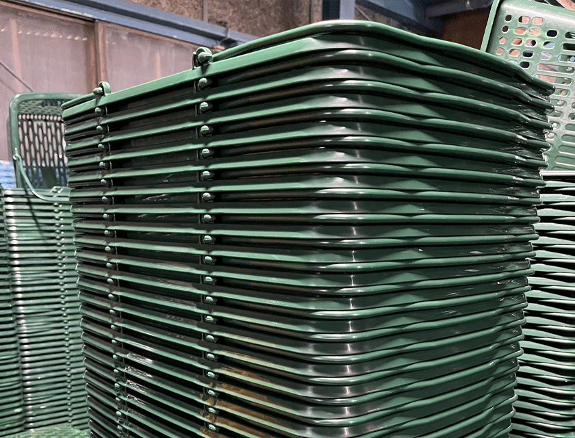 当社では、カゴの形状や材質に最適化された専用の洗浄機を導入。高温水と高圧ノズルを駆使し、目に見えない汚れや菌まで徹底的に除去します。食品スーパーや医療関連など、衛生基準の高い現場にも対応できる高水準の洗浄品質で、安心・安全なカゴの再利用を実現しています。